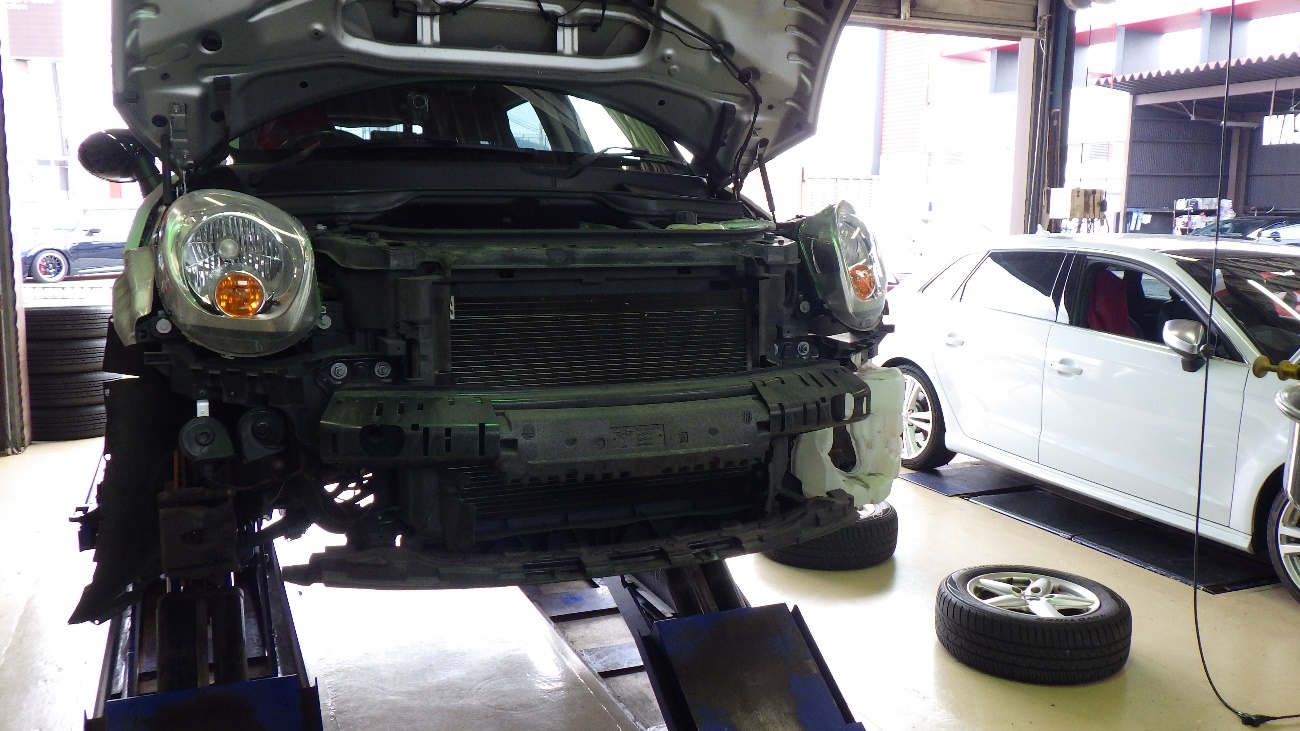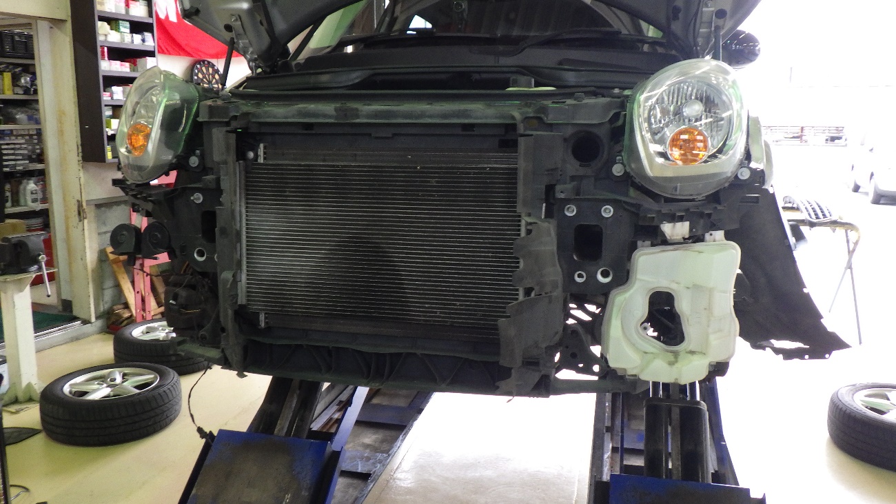 フロントバンパーを取り外した状態になります。