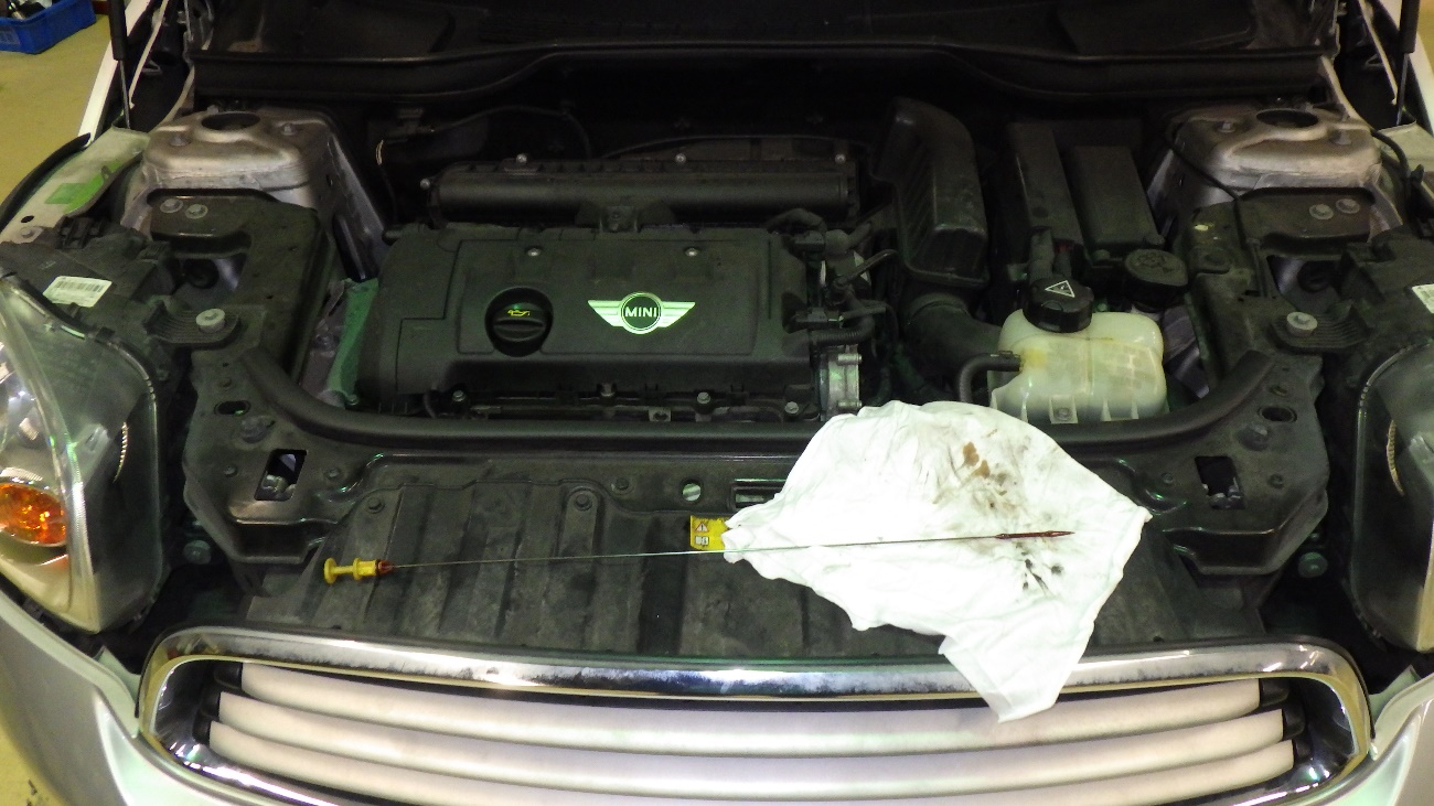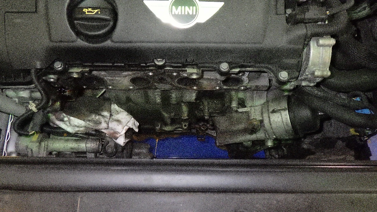 I様 BMWミニ オイル、LLC漏れ修理レポート 75256 km この度はご入庫ありがとうございます。 エンジンオイル、クーラント漏れの修理作業に取り掛かって…