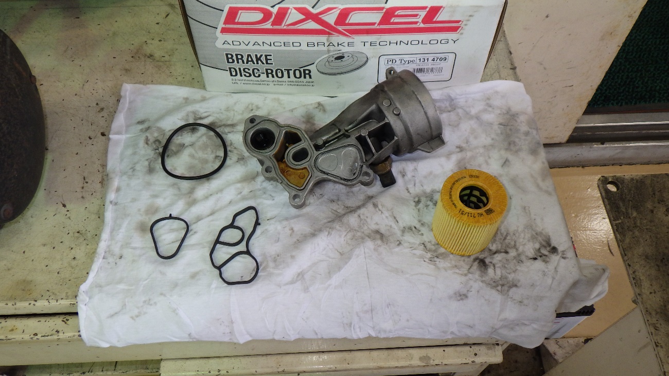今回一番漏れていたエンジンオイルフィルターハウジングケースになります。これより分解して参ります。
