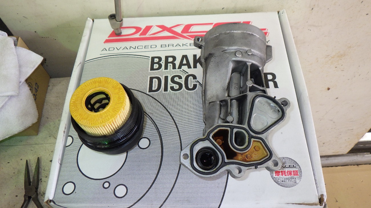 エンジンオイルフィルターハウジングケースが取り外れた状態になります。