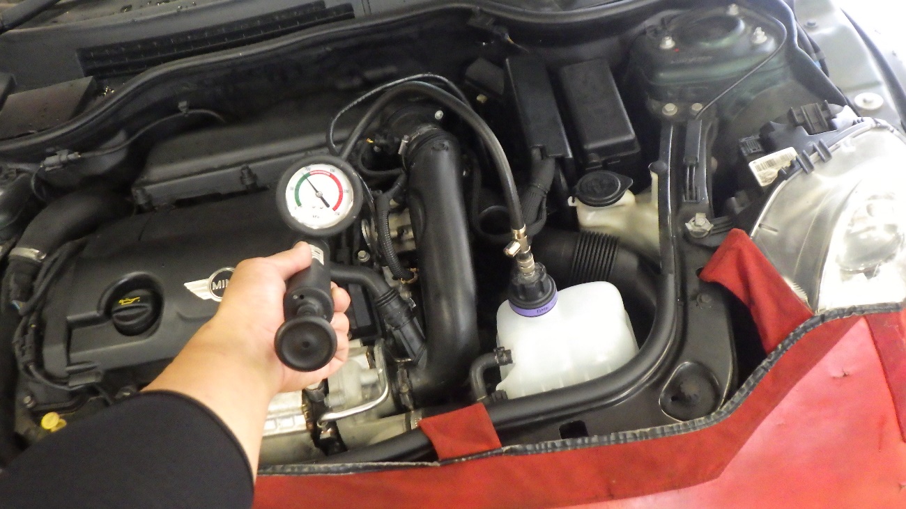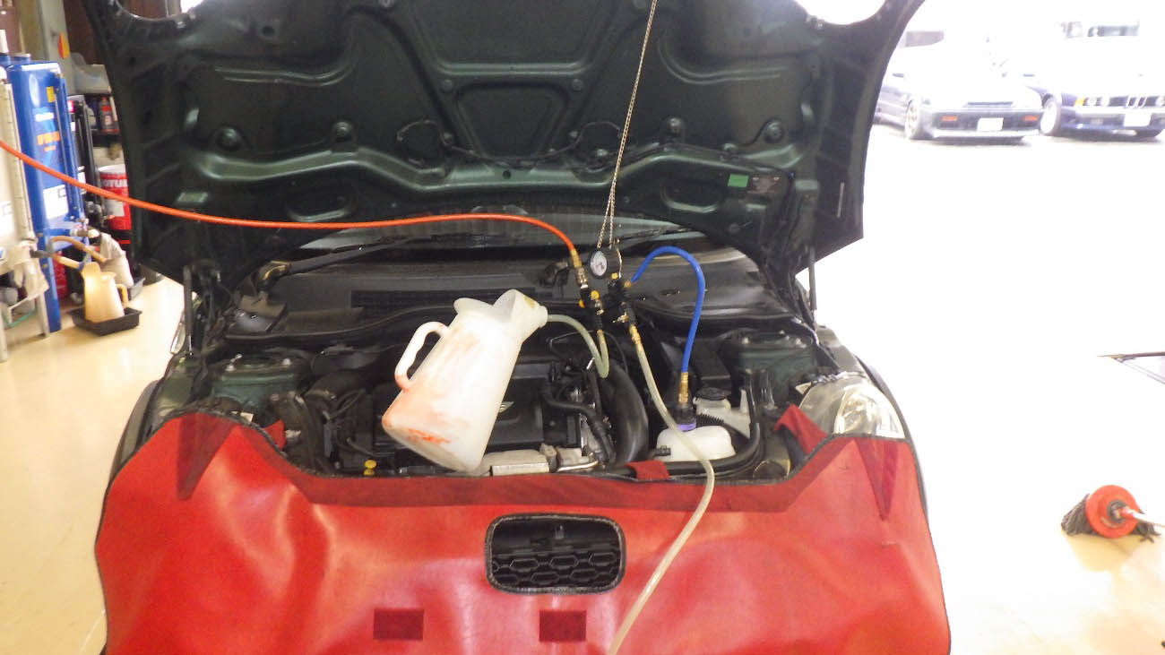 クーラント補充後、こんどは加圧テストを実施しております。
