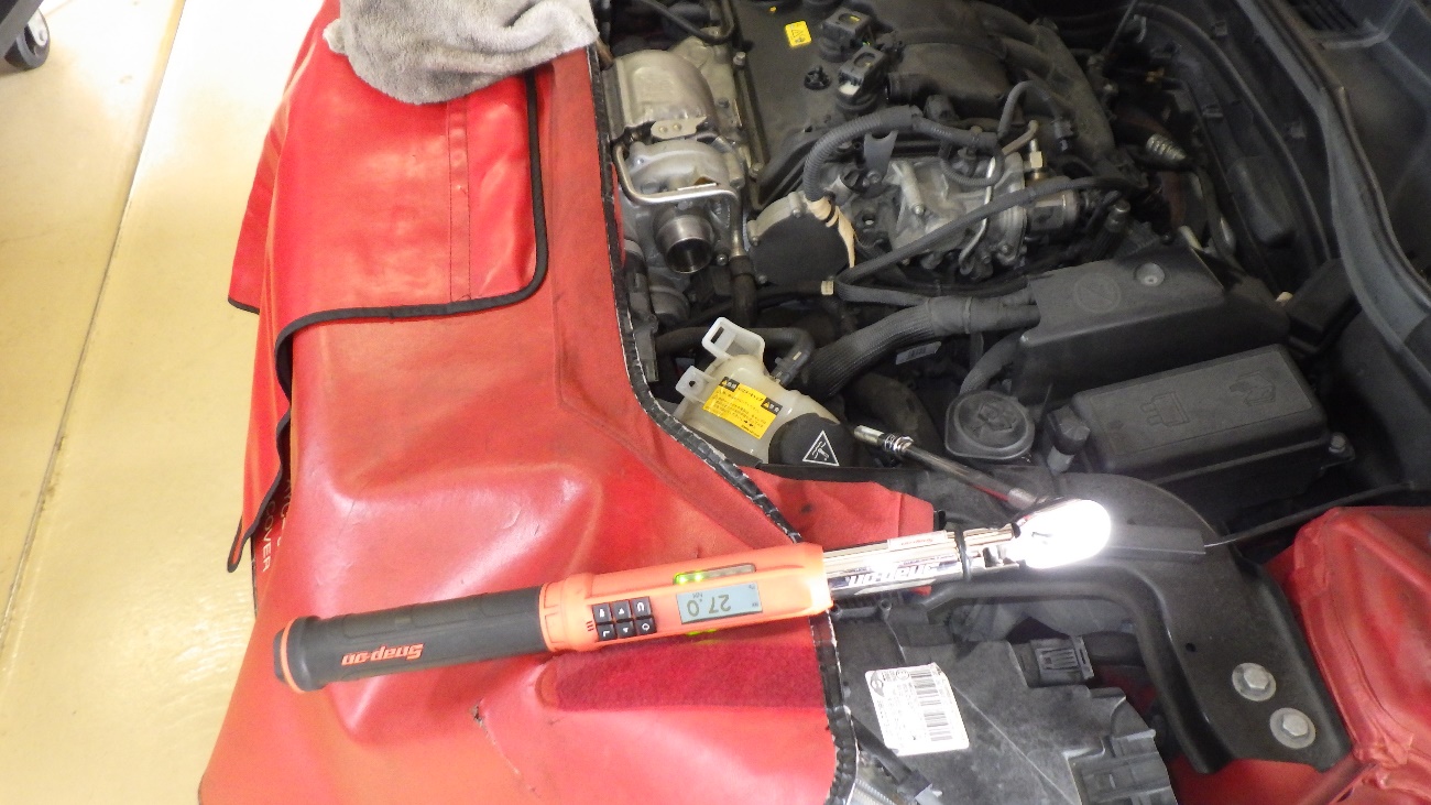 新しいエンジンオイルフィルター交換後、規定トルクにて締め付けております。