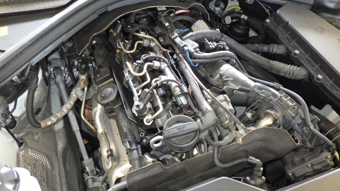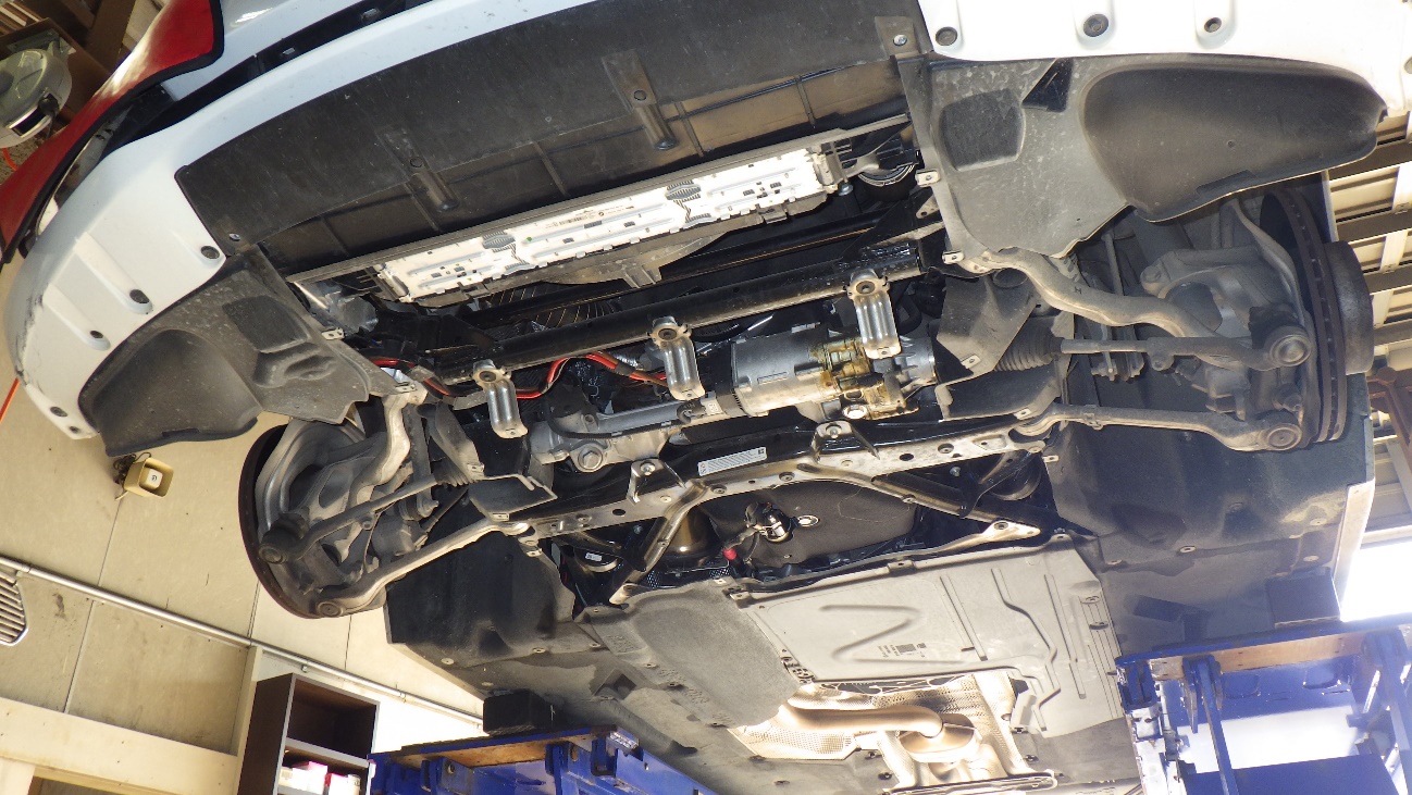 化粧トリムを外し各部の劣化損傷や油脂類の漏れ等がないかを点検しています。
