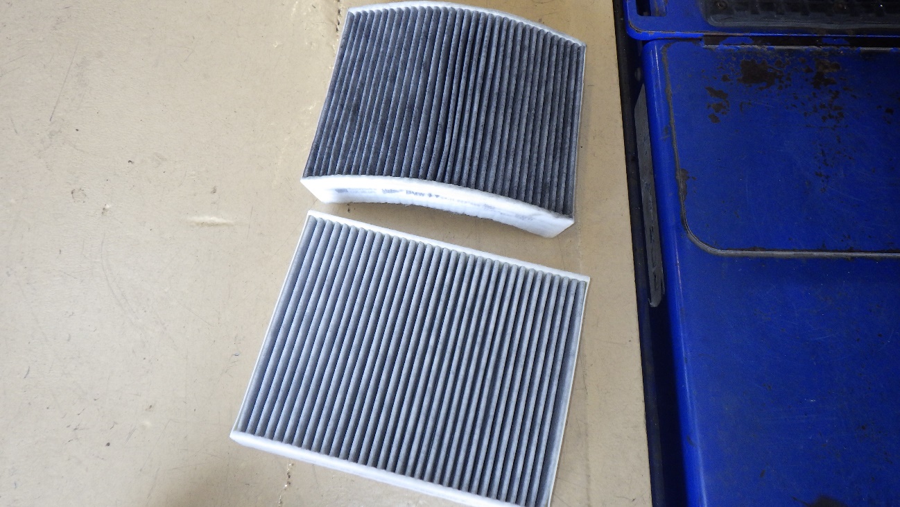 画像下側が新品のエアコンフィルターです。交換を実施しています。