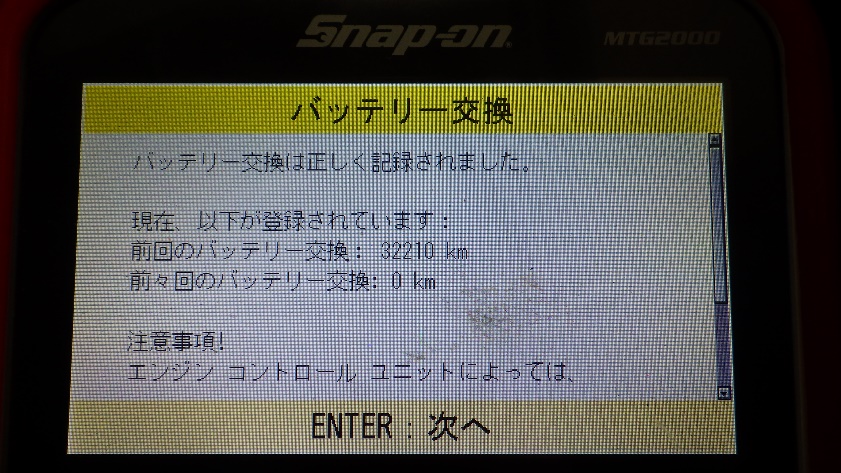 テスターにてバッテリーの交換の登録を実施しています。