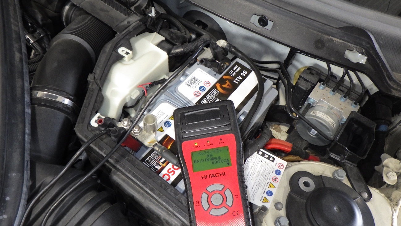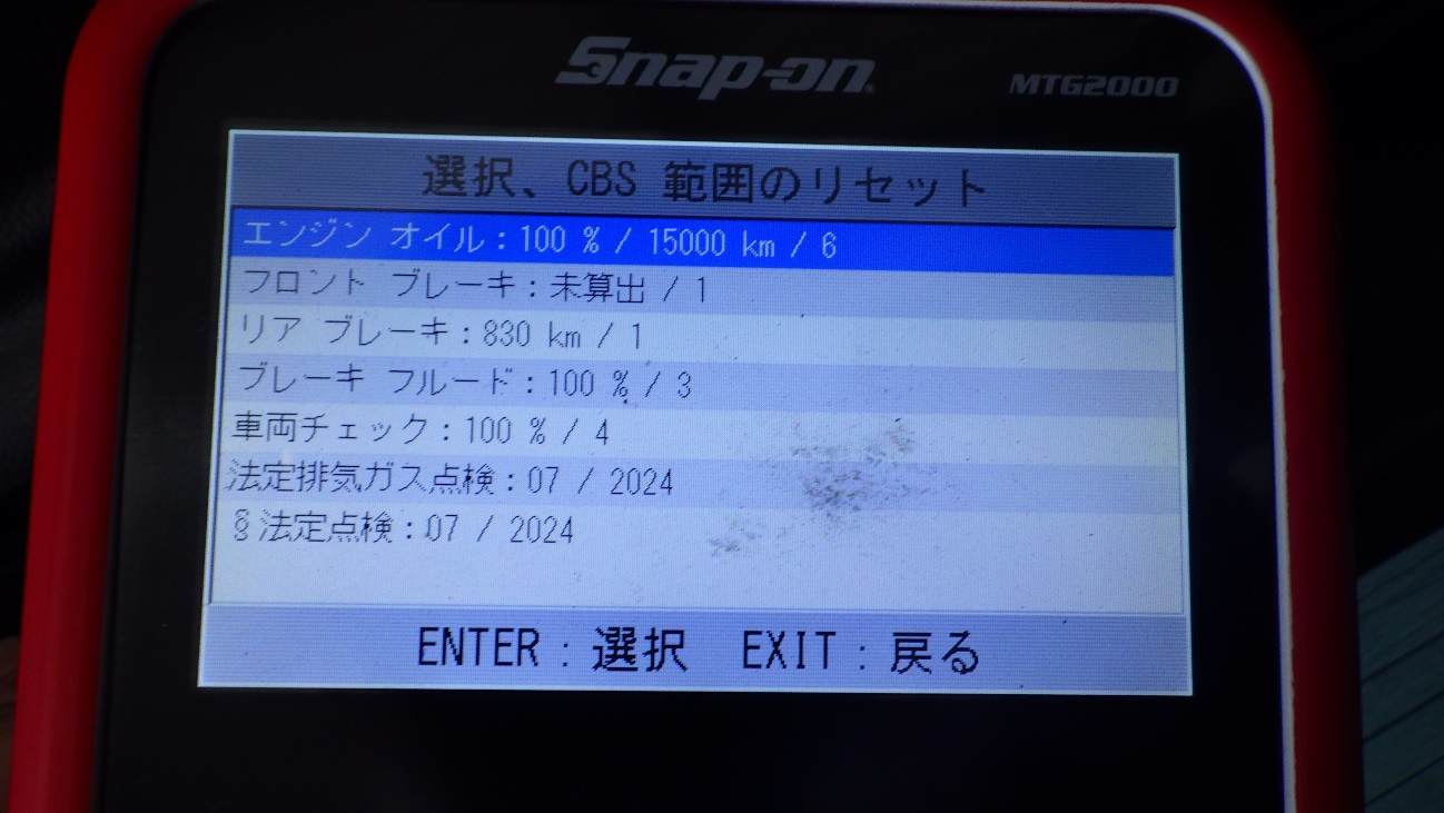 テスターにて故障コードの確認と、サービスのリセットを実施しています。