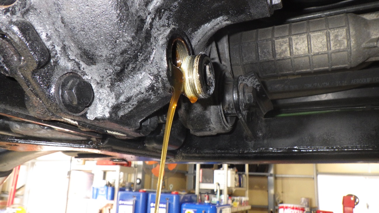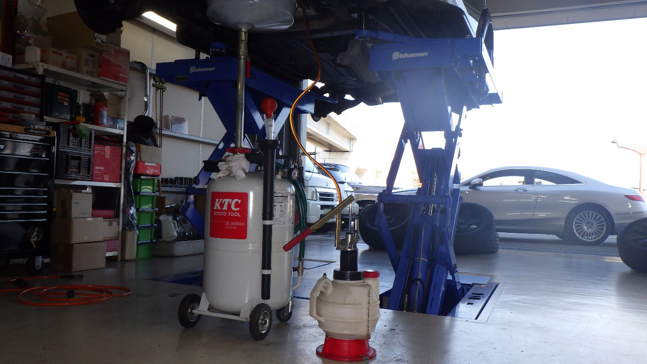 新品ドレンボルトに交換後デフオイルをポンプを使って規定量入れていきます。