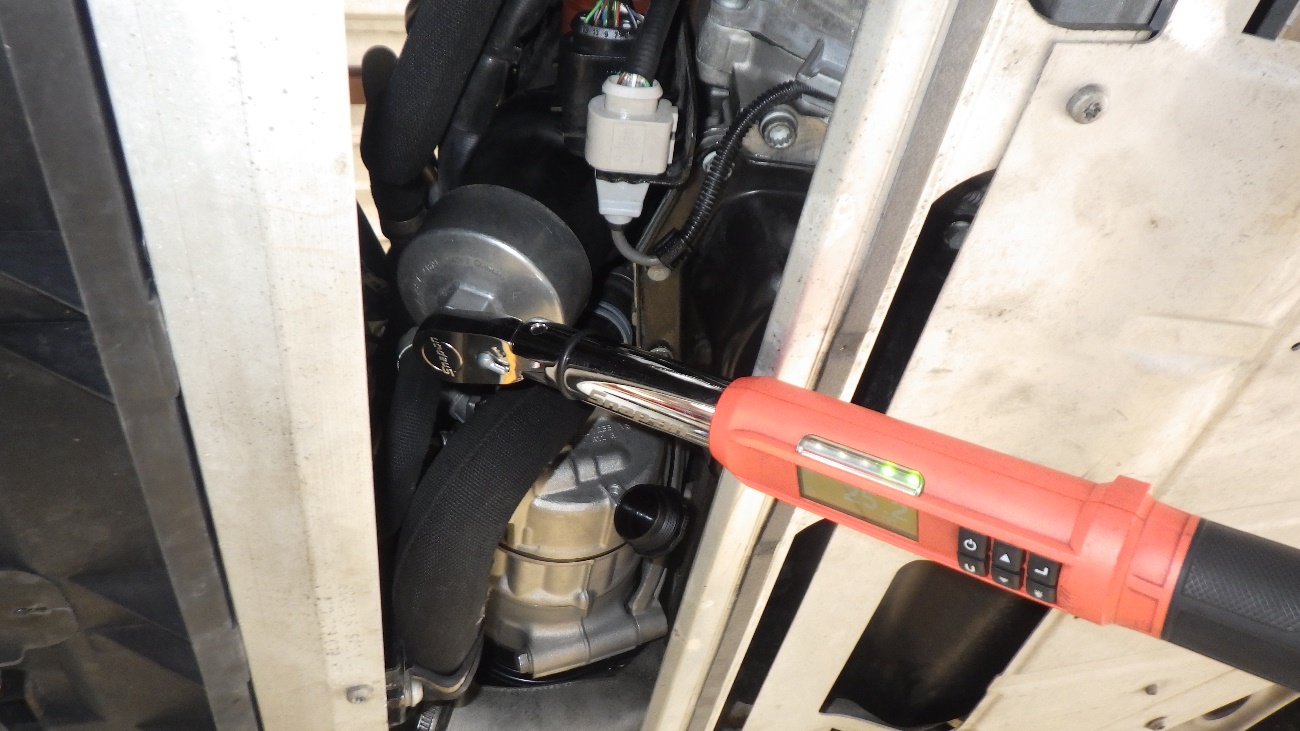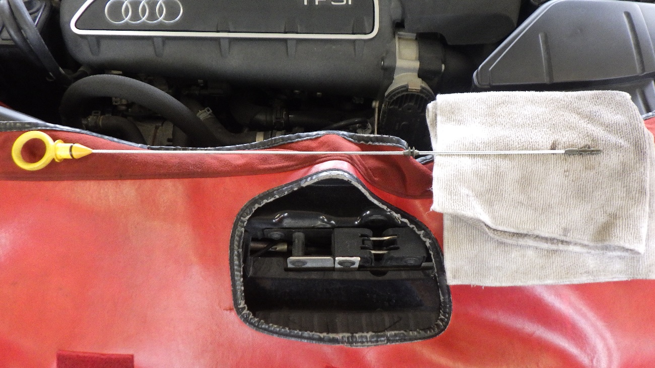エンジンオイルフィルター交換後、レベルゲージにてオイル量を調整しております。