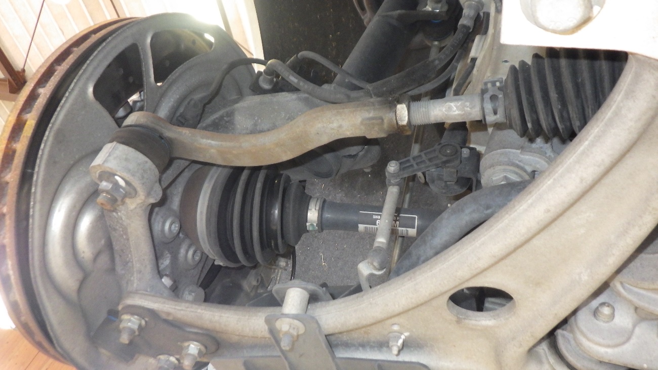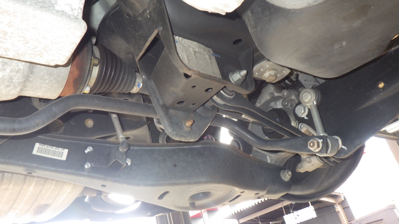 フロント部のドライブシャフトブーツ、ブッシュ類の亀裂等の点検様子になります。