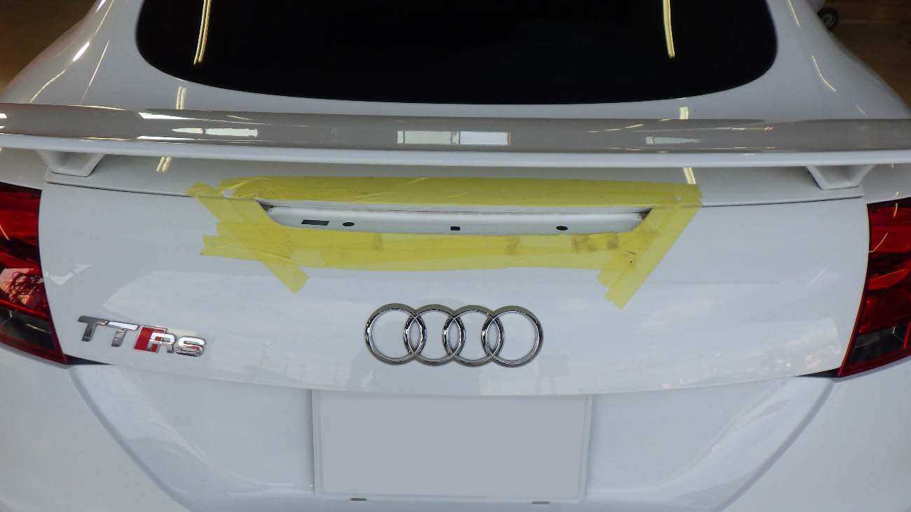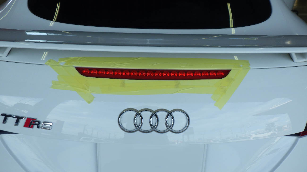 両面テープを取ってハイマウントストップランプを外した様子になります。