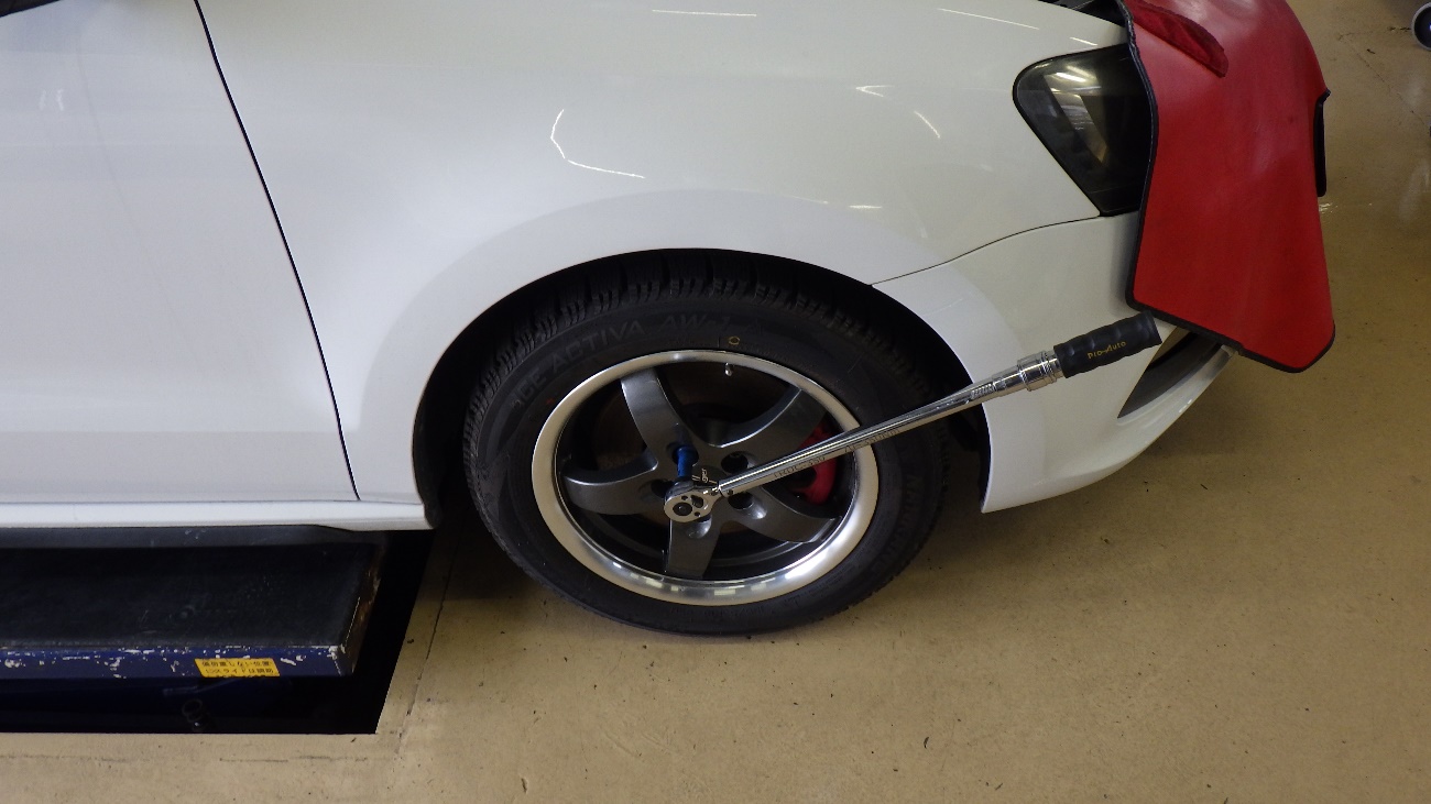全ての交換作業が完了後、全てのホイールの締め付けを実施。