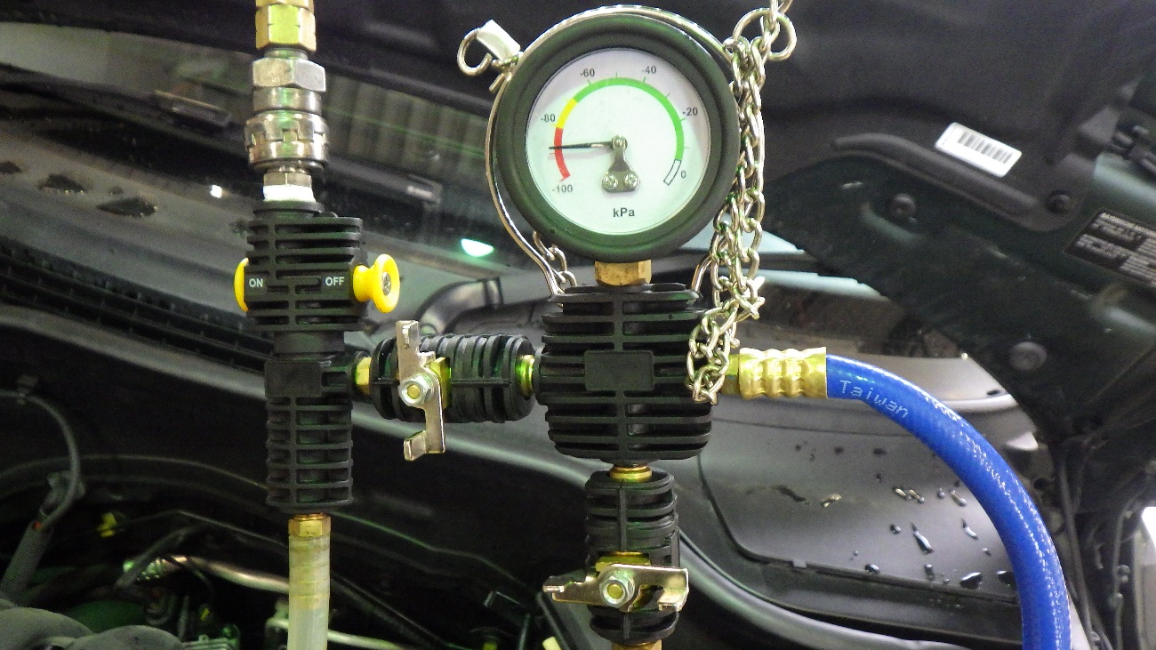 交換作業完了後、クーラントの真空引き及びリークテストを実施しております。
