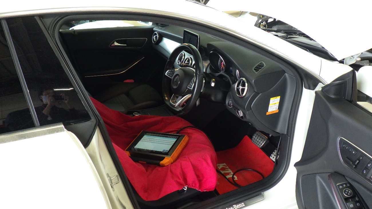 フロント足廻り損傷でのお預かりになります。 入庫後、入庫確認作業を行い、キズ、汚れ防止の為、ハンドルカバー、 シートカバーの取り付けを行いました。 入庫確認の後…
