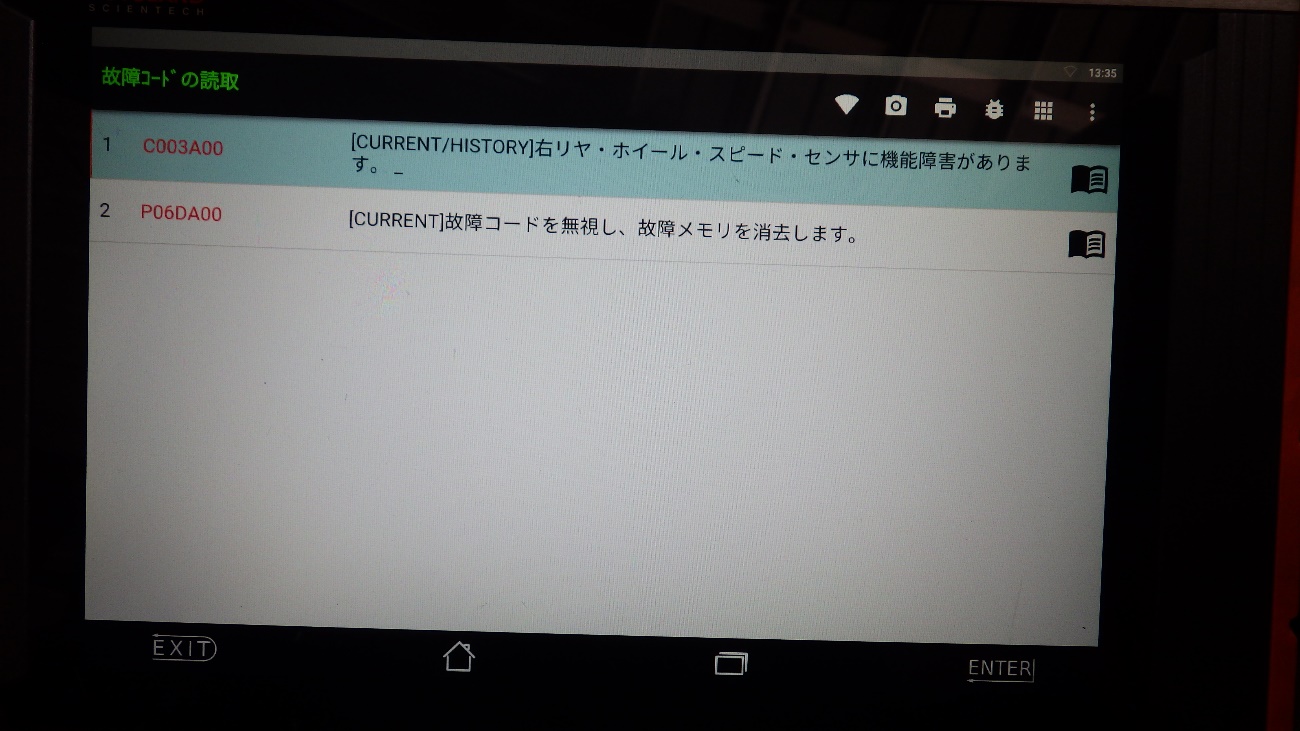 右リヤのスピードホイールセンサーにエラーが表示されてました。