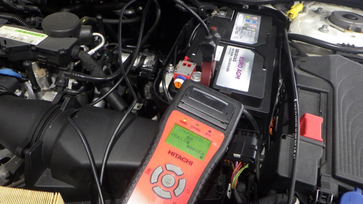 テスターにてバッテリーの点検を実施しています。