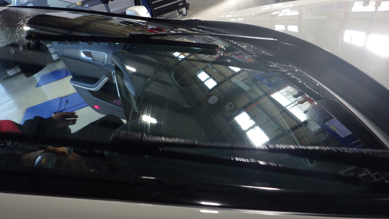 フロントワイパーラバーふき取りの点検を実施しています。