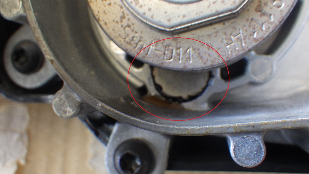 ウォーターポンプの漏れている箇所の拡大図になります。