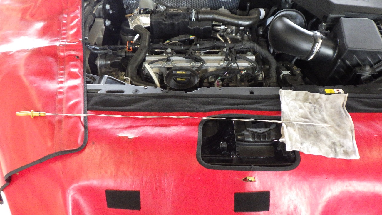 エンジンオイル交換後、レベルゲージにてオイル量を調整しております。