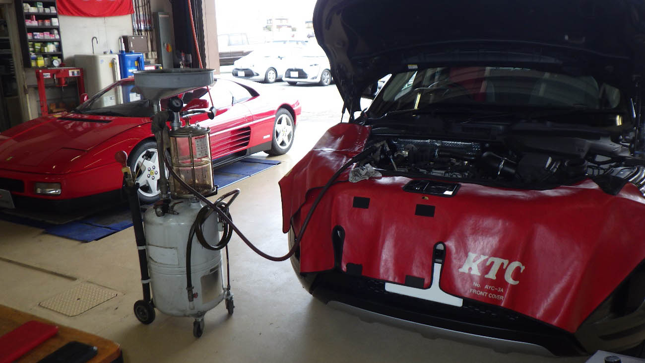 エンジンオイルの交換様子になります。