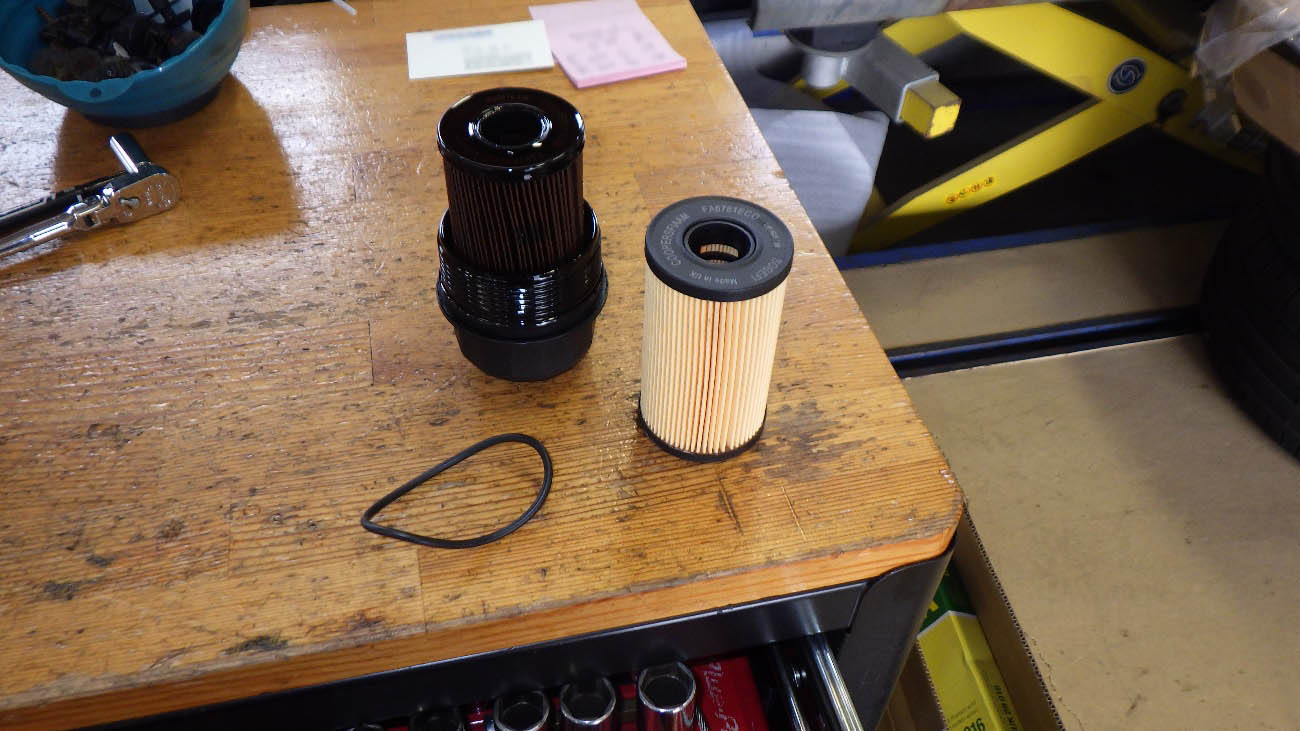 エンジンオイルフィルターを外した様子になります。