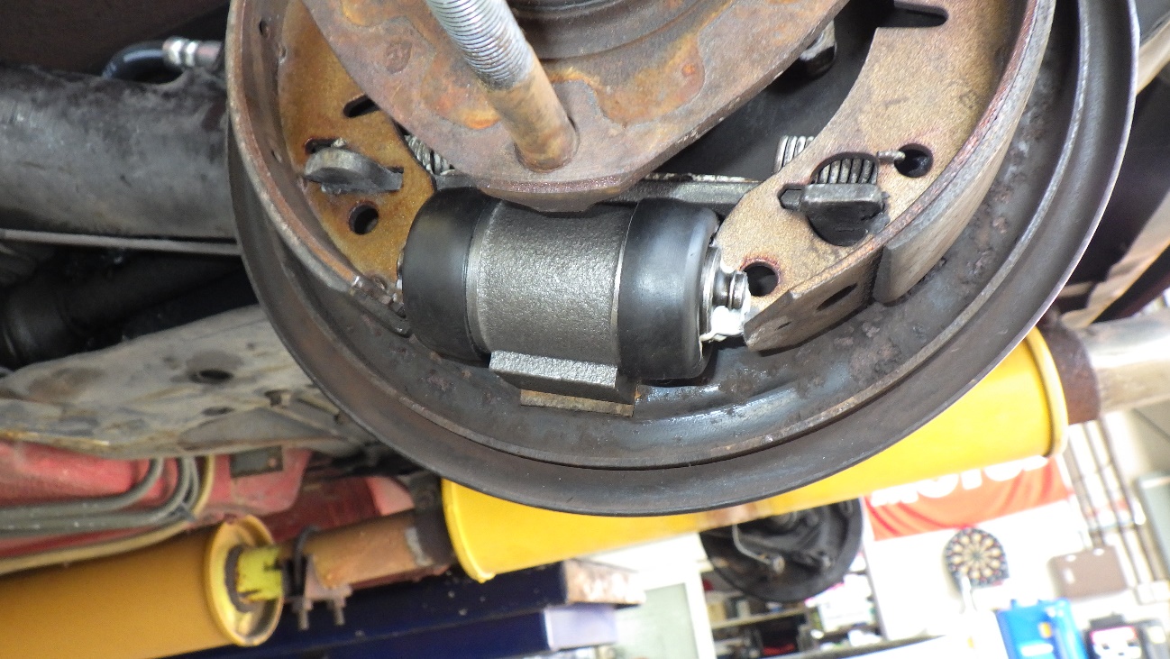 リヤブレーキはホイールシリンダーからブレーキオイルが漏れていました。