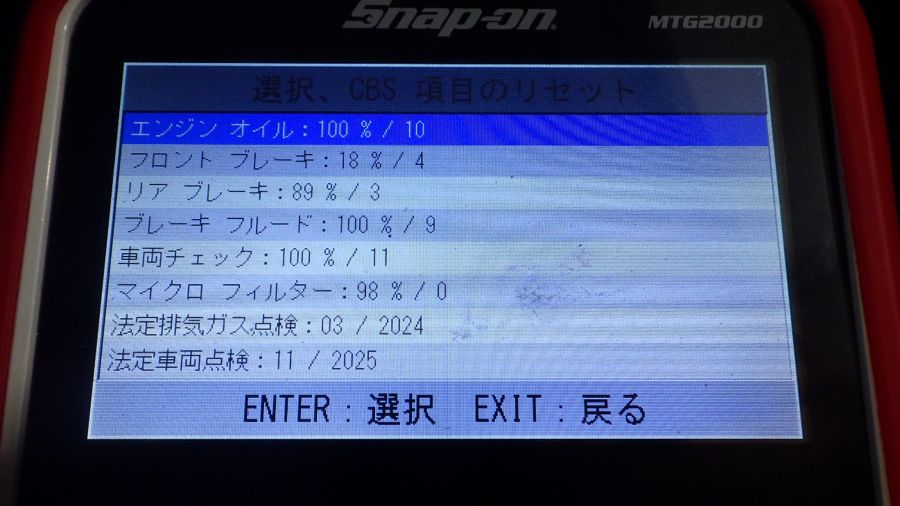 テスターにて故障コードの確認と、サービスのリセットを実施しています。