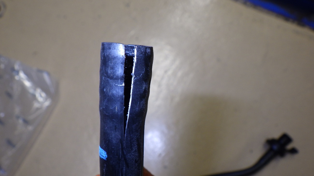 ホースの拡大図になります。このように複数亀裂が走っており、目視にも限界があるので、