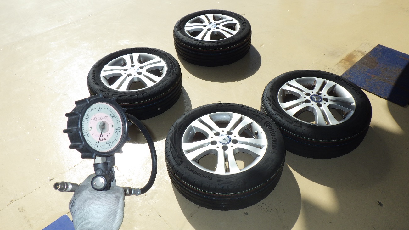 タイヤの交換後、タイヤの空気圧調整を実施しております。