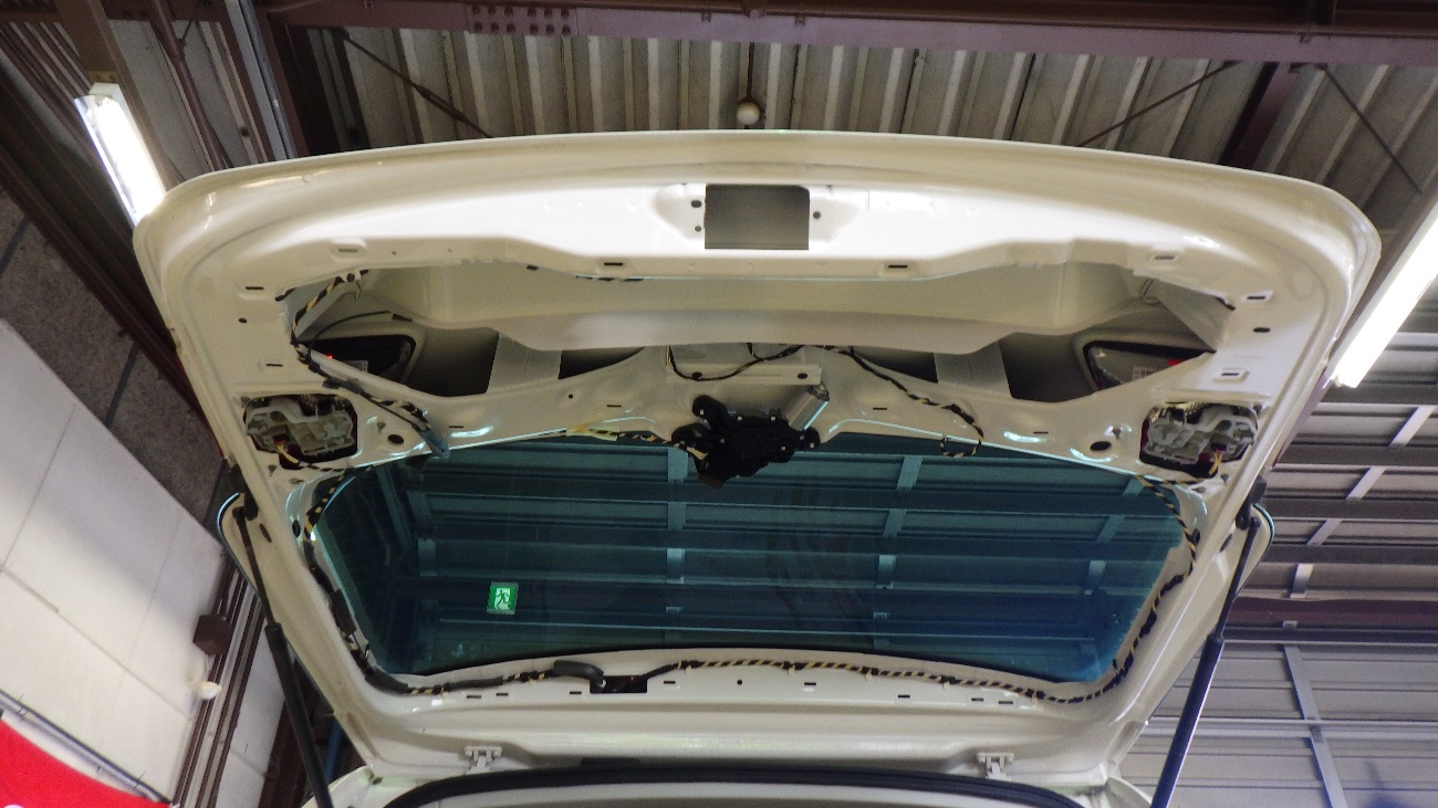 リヤゲートに関してはリヤゲートロックが完全に保持していない機械的な不具合でしたので交換作業に取り掛かって参ります。
