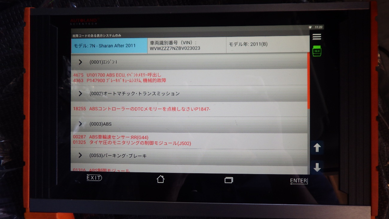 複数エラーがあり、一番考えられるのは右リヤのスピードセンサーの不具合で警告灯が