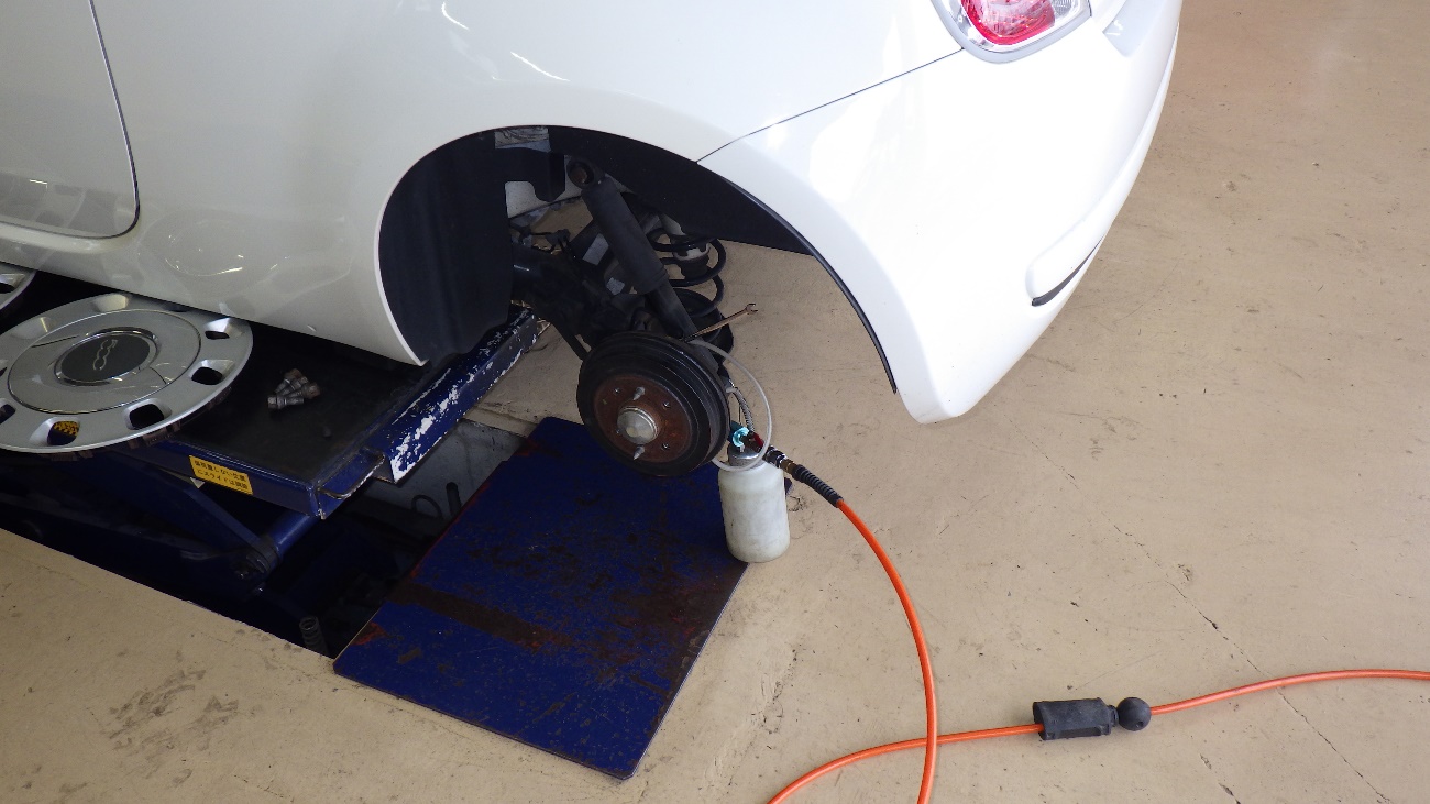 リヤドラム復元作業後、ブレーキオイルの交換様子になります。