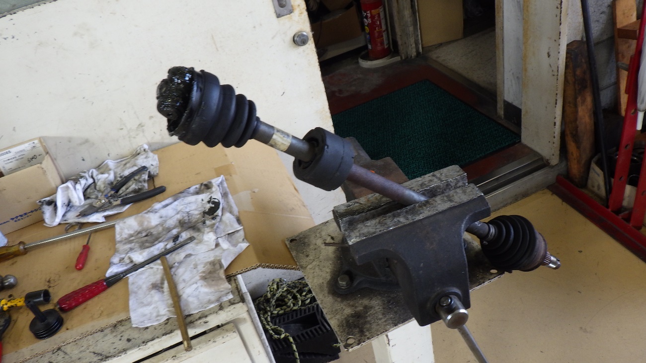 ドライブシャフトのインナーブーツが完全に破れていましたので、交換させて頂きます。