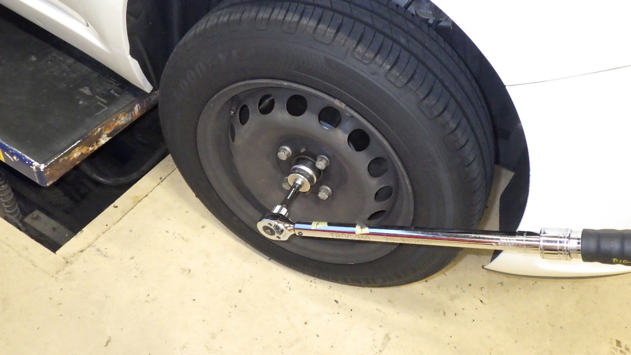 左右共ドライブシャフトを組付け後、センターナットを規定