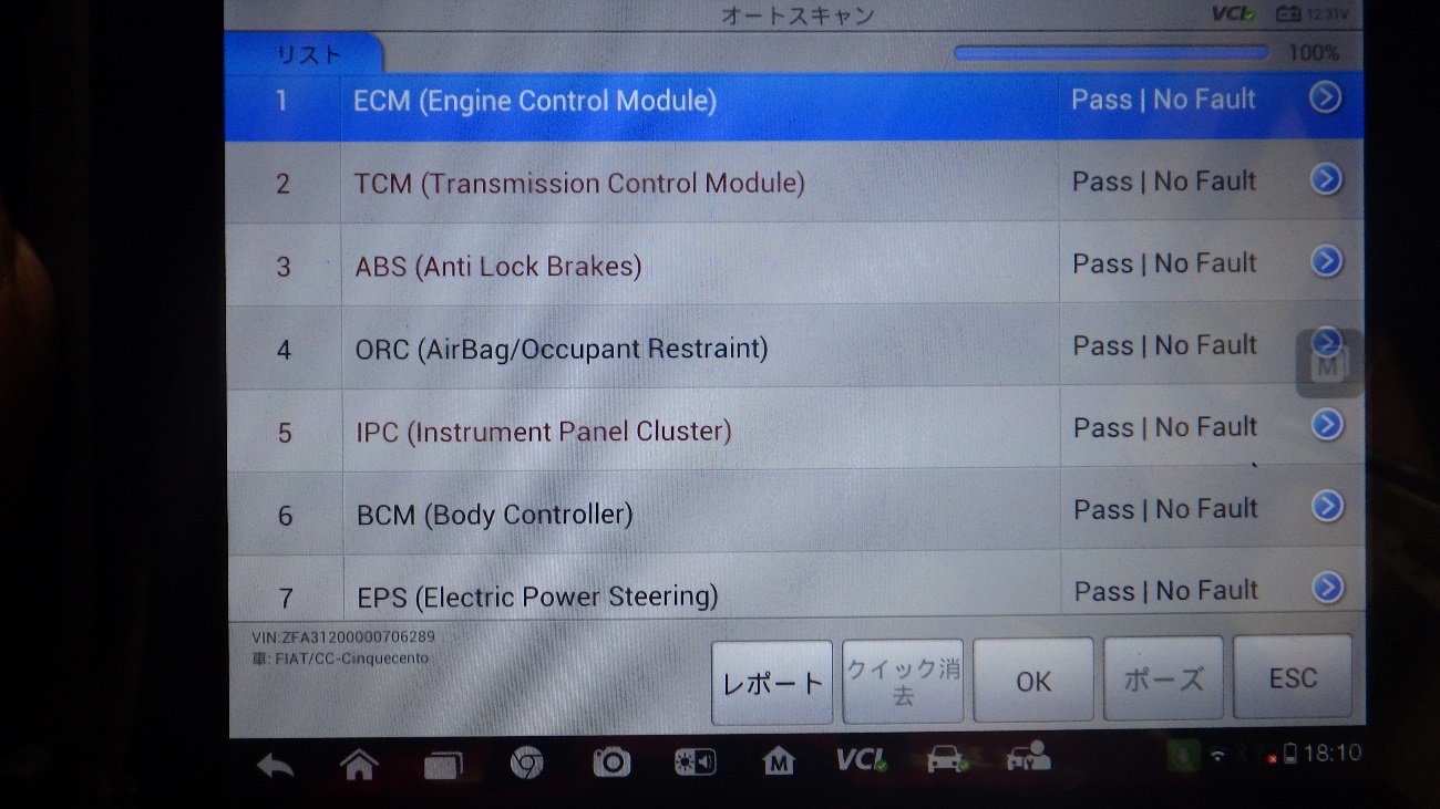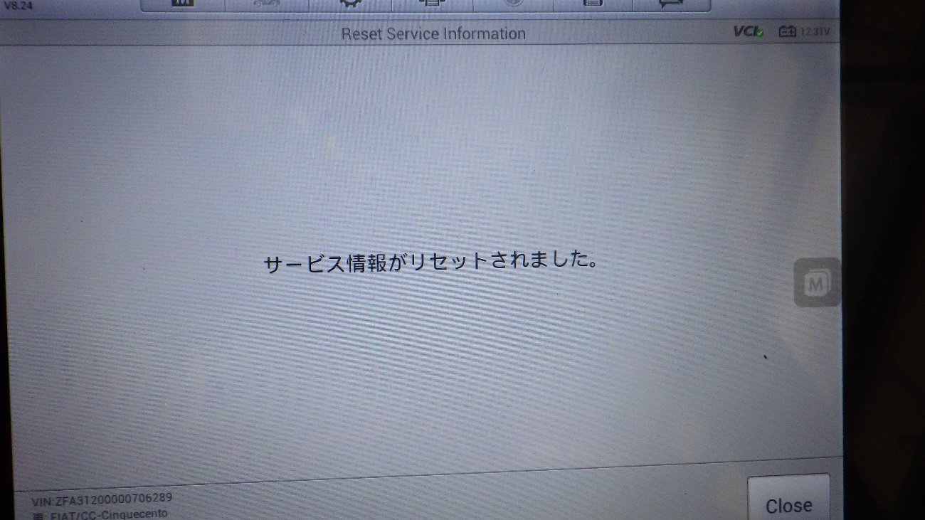 テスターにて故障コードの確認と、サービスのリセットを実施しています。