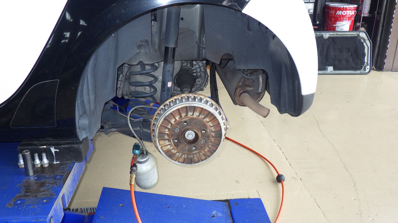 リヤ側のブレーキオイルの交換様子になります。