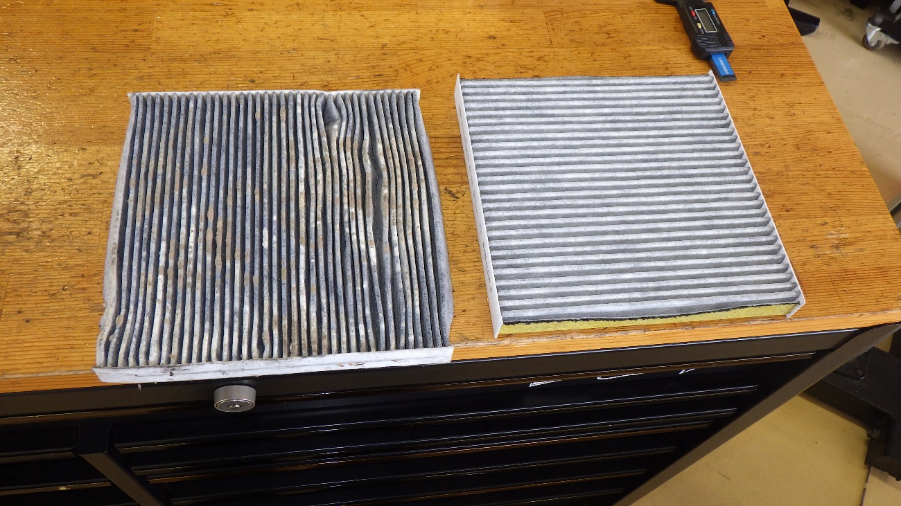 新旧比較したエアコンフィルターになります。