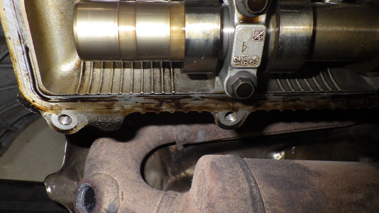 今回オイル漏れの原因となっているヘッドカバーとヘッドの