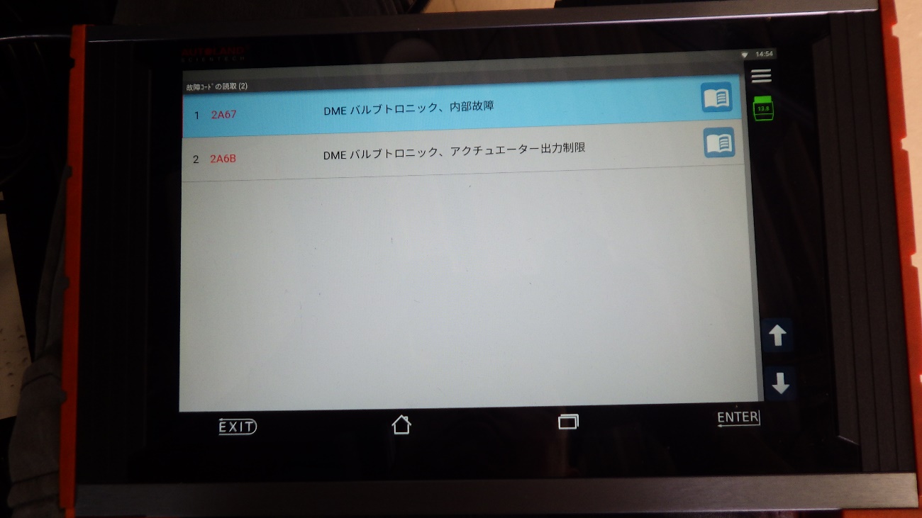 エンジンECU(DME)にエラーが無い事を確認してから初期化を行います。