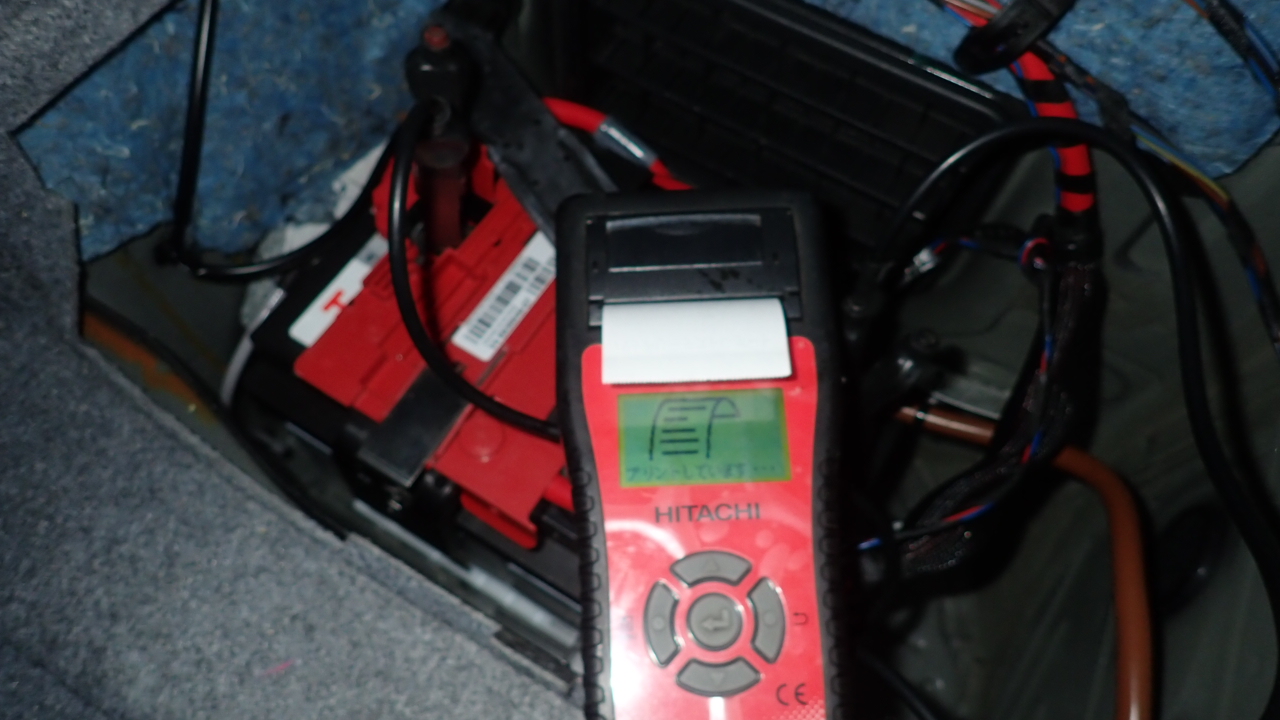 テスターにてバッテリーの点検を実施しています。