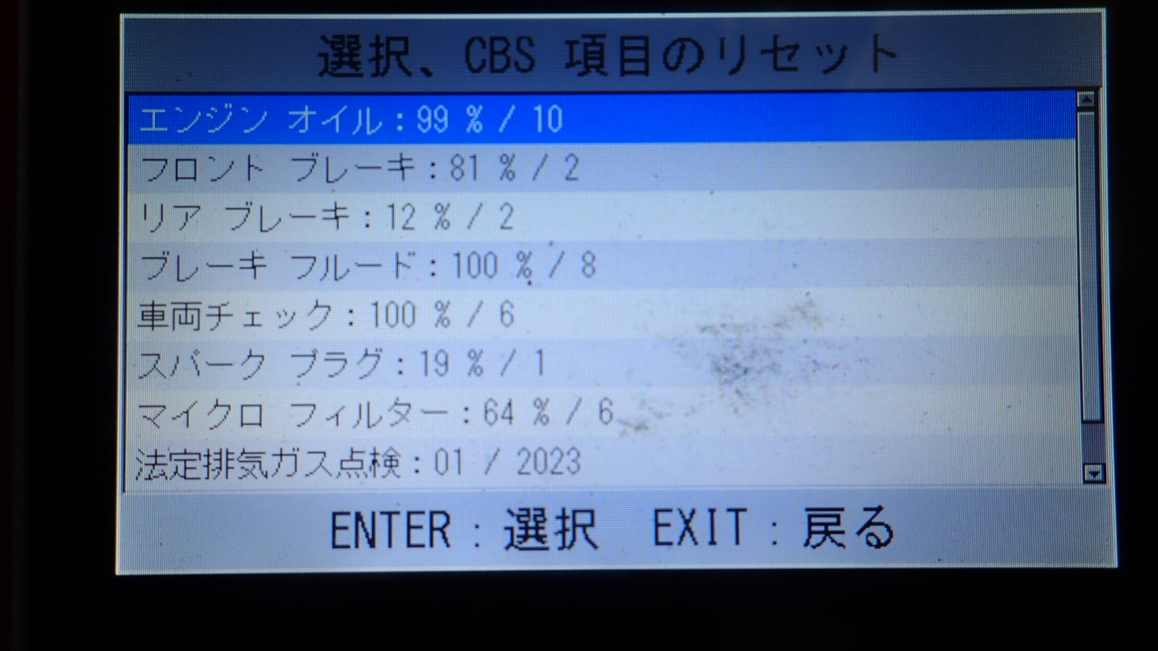 テスターにて故障コードの確認と、サービスのリセットを実施しています。