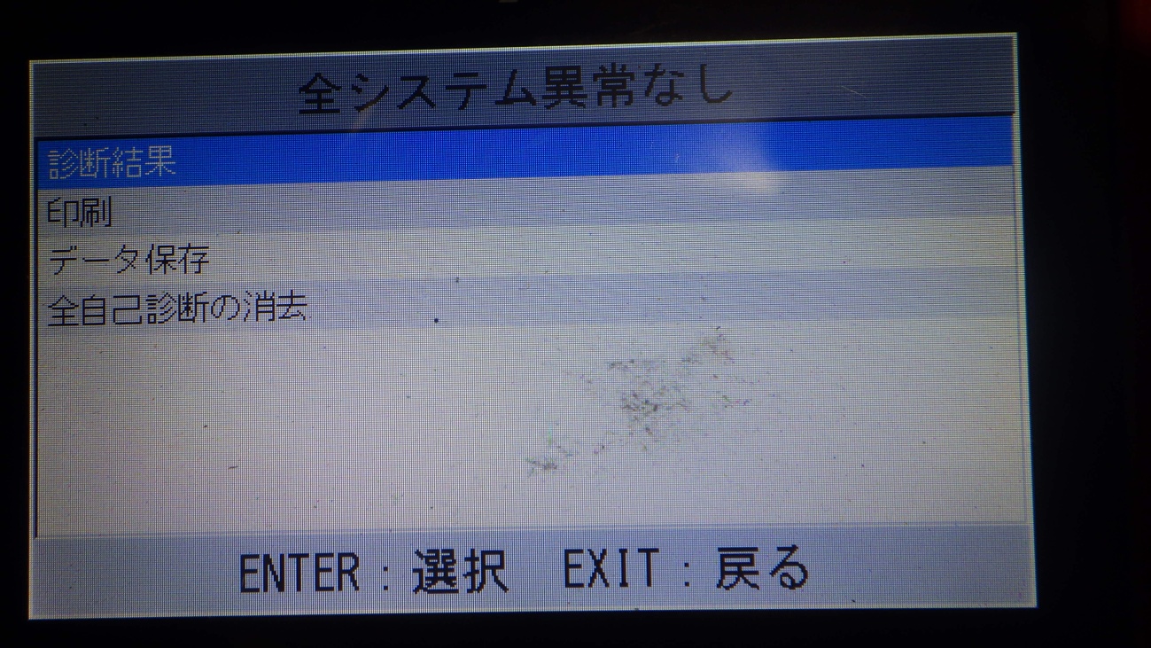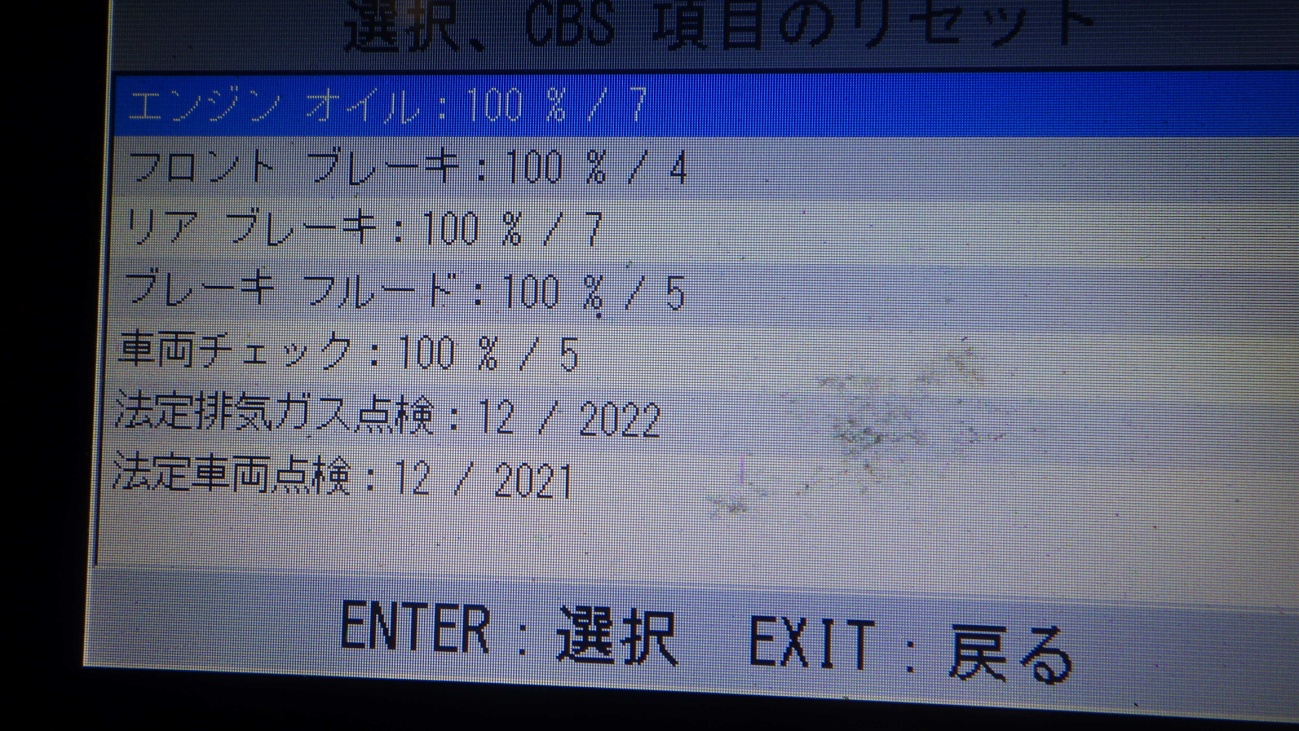 テスターにて故障コードの確認と、サービスのリセットを実施しています。