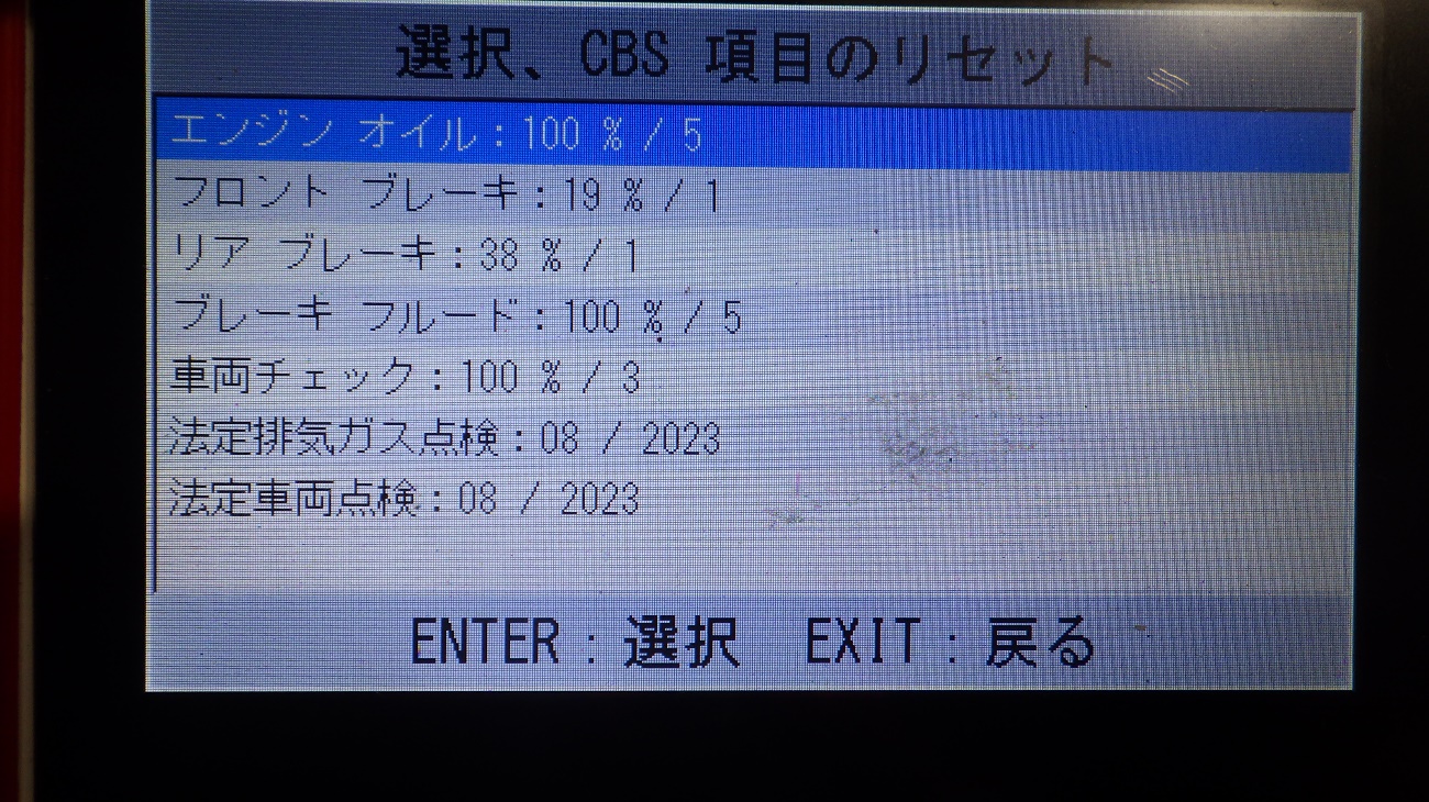 テスターにて故障コードの確認と、サービスのリセットを実施しています。