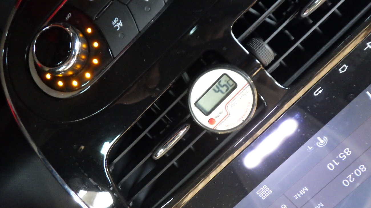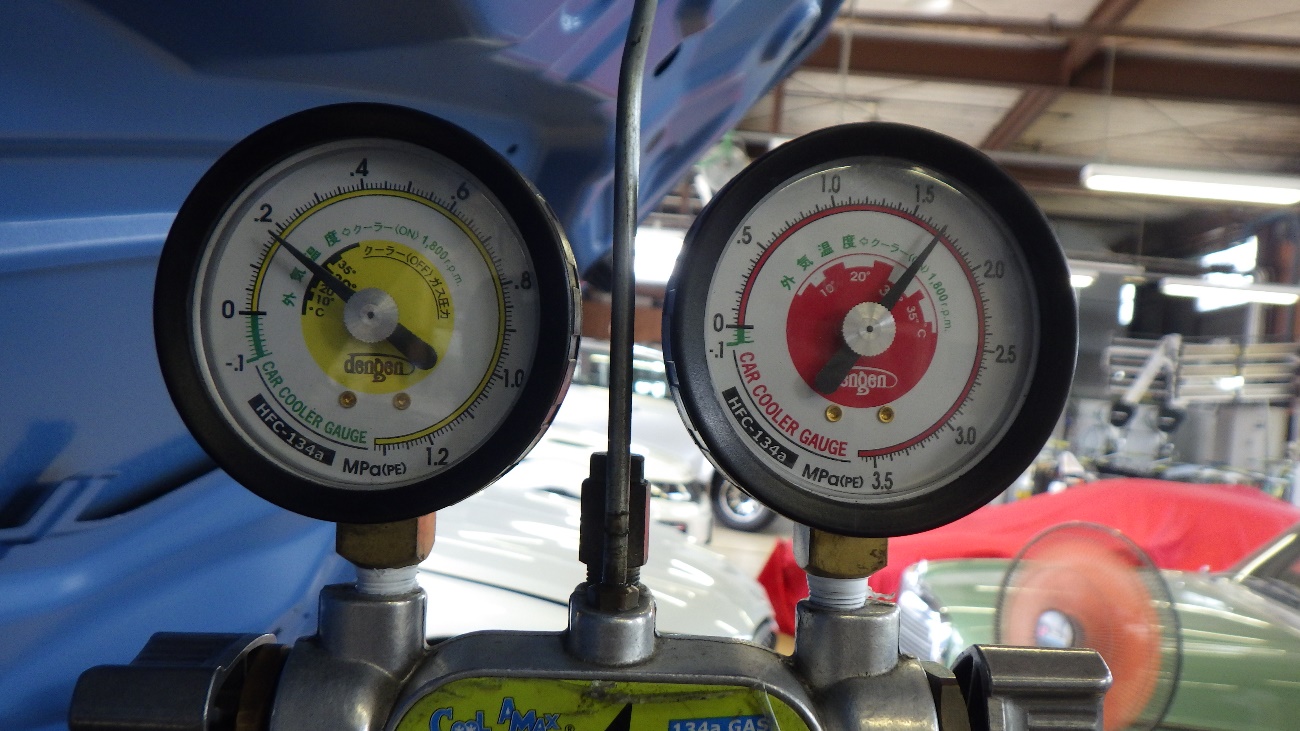 エアコンガスを規定量補充後、約2000回転状態のエアコンガス圧の様子になります。