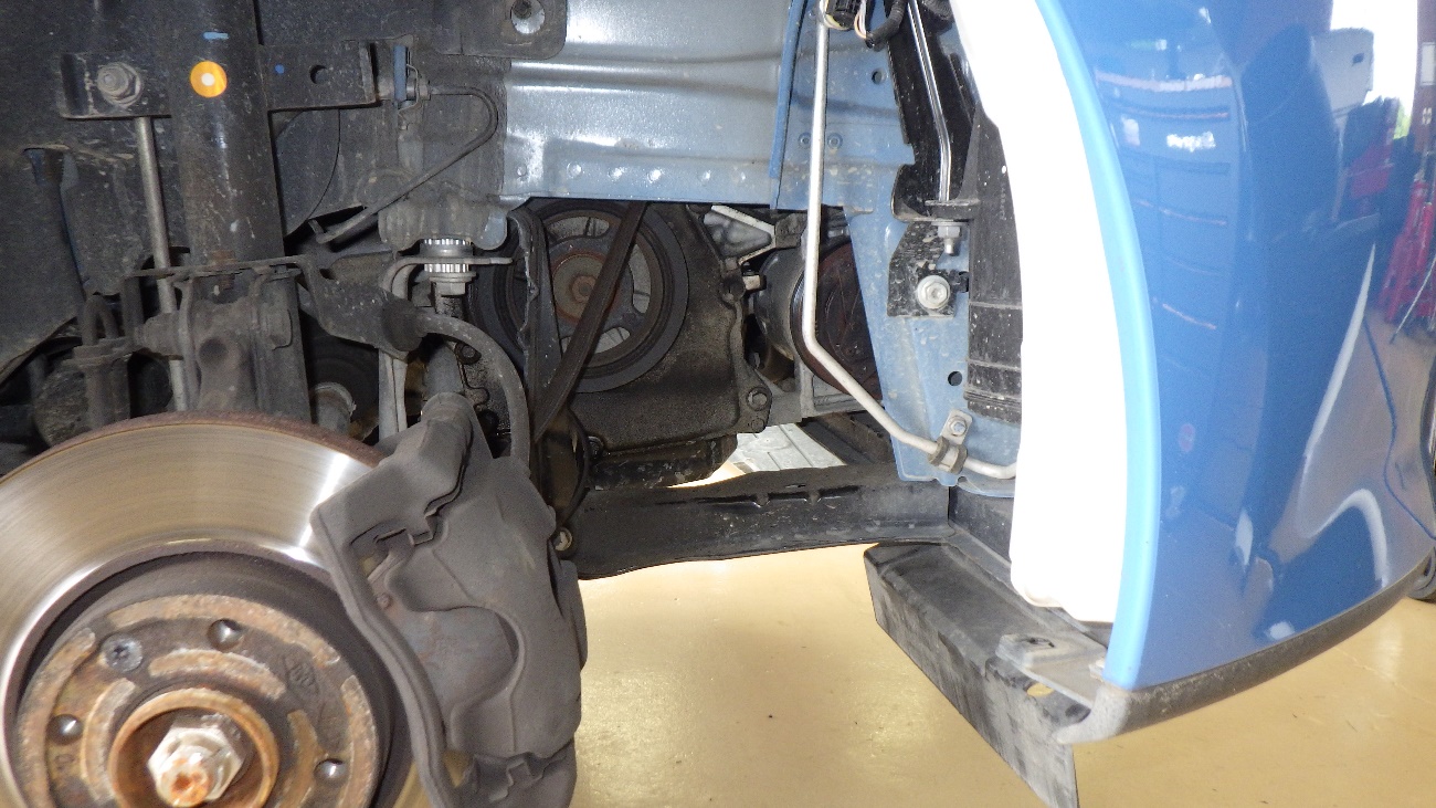 ドライブベルト及びタイヤハウスを取り外した状態になります。
