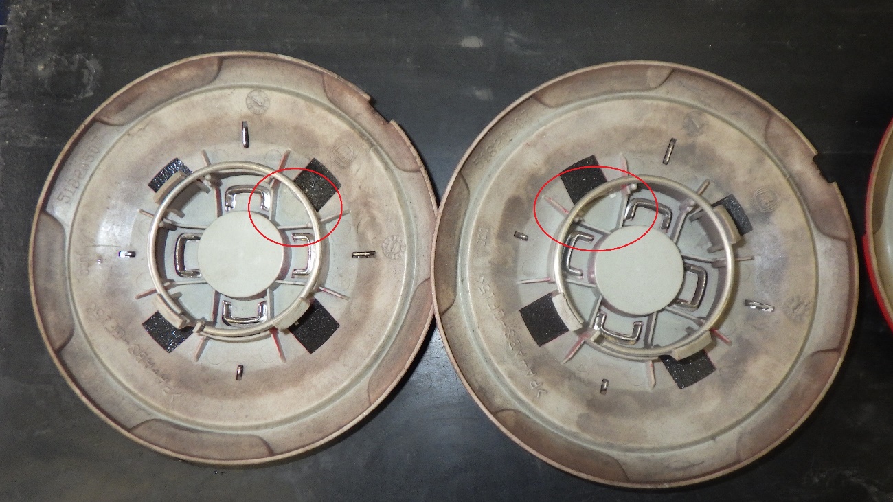 こちらもセンターキャップの4つある内の2つの固定部が折れて無くなっておりました。
