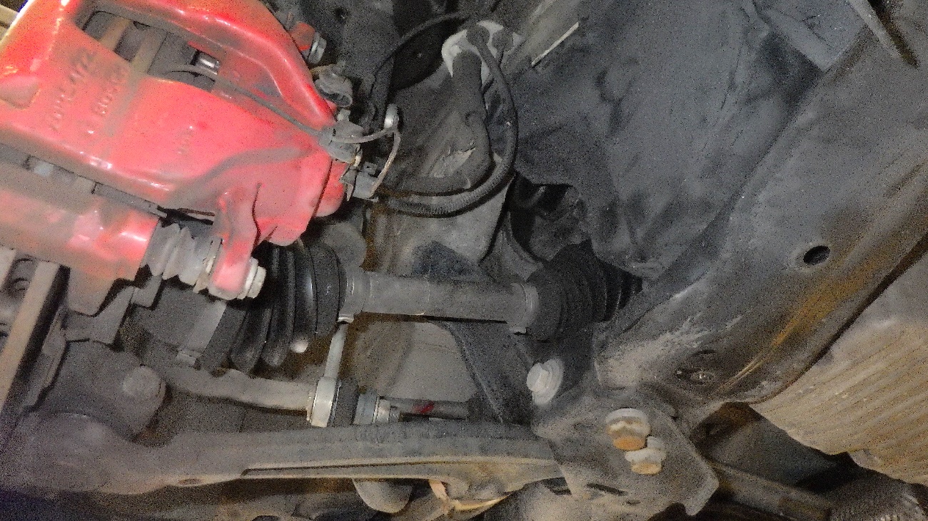 ドライブシャフトブーツや各ブッシュ類の亀裂等の点検様子になります。