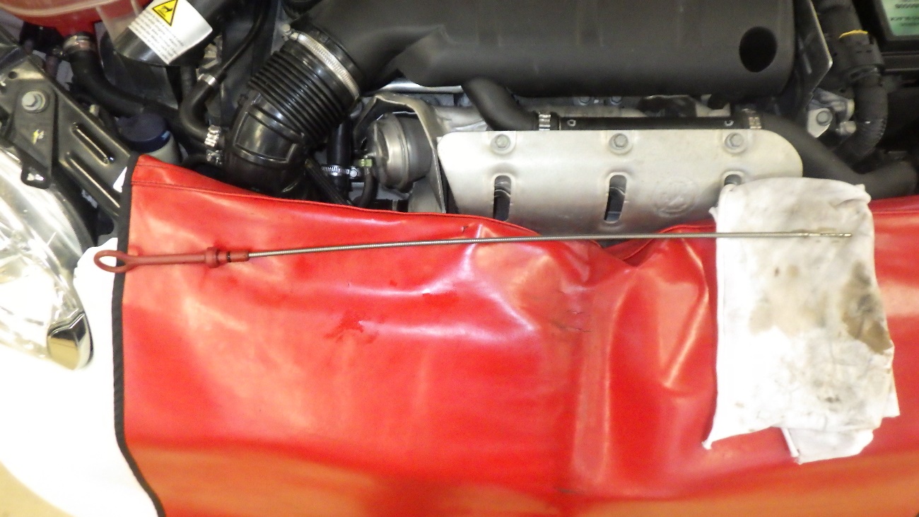 エンジンオイル交換後、レベルゲージにてオイル量を調整しております。