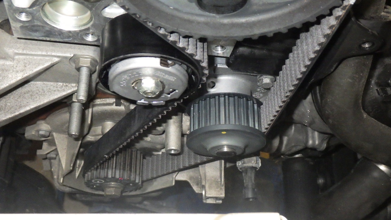タイミングベルト交換後、オートテンショナーを規定位置に固定して、