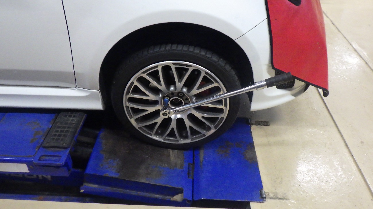 最終、右フロント側のホイールを規定トルクにて締め付けております。