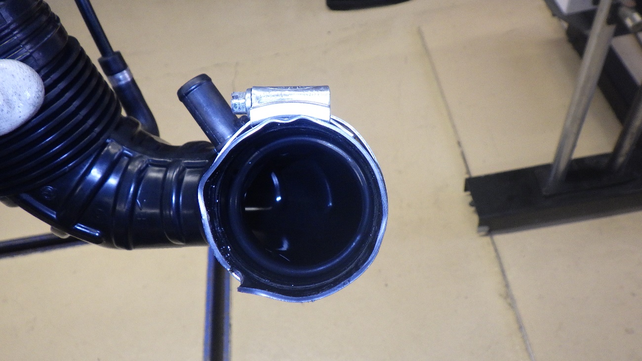 社外品のホースバンドをしようしていた為、エアダクトが変形しておりました。